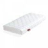 Il associe une partie supérieure préventive en mousse viscoélastique à mémoire de forme, et un support en mousse Haute Résilience pour éviter tout talonnement du patient avec le sommier du lit.